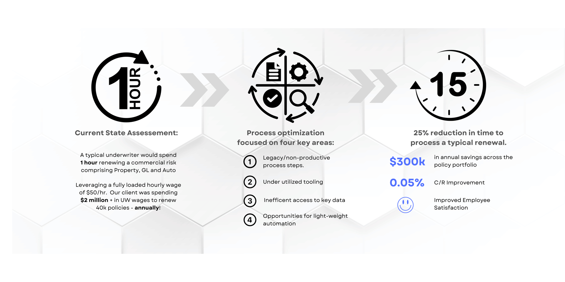 Importantly, our mission wasn't to reduce the workforce. Instead, the newfound efficiency empowered underwriters to forge deeper relationship with their channel partners, collaborate with their safety and loss control colleagues to develop new programs, and clear capacity for product innovation.